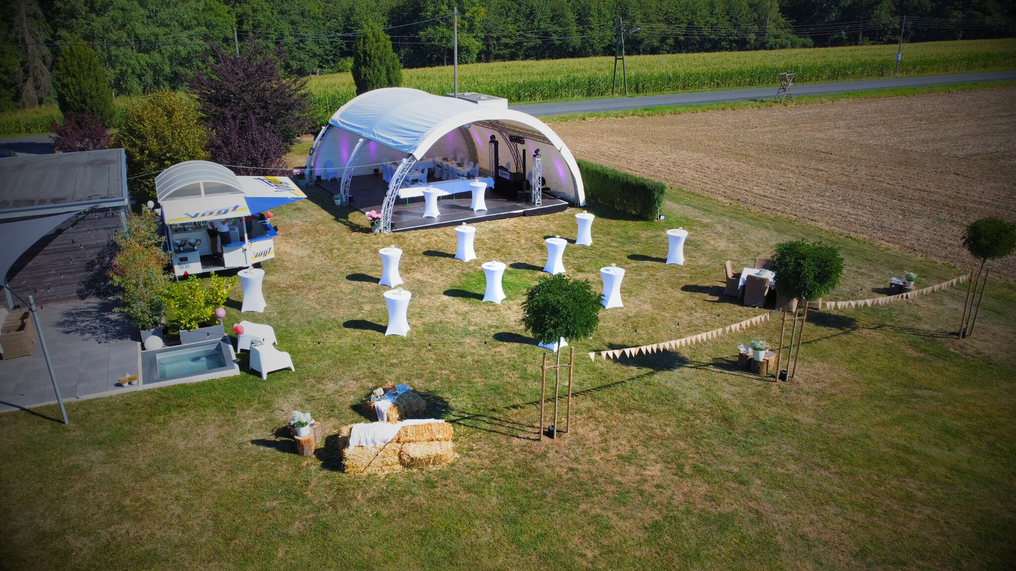 Wir beraten Euch gerne bei der Auswahl der passenden Technik und kümmern uns um den reibungslosen Auf- und Abbau, sowie um den Betrieb während Eurer Hochzeit.
