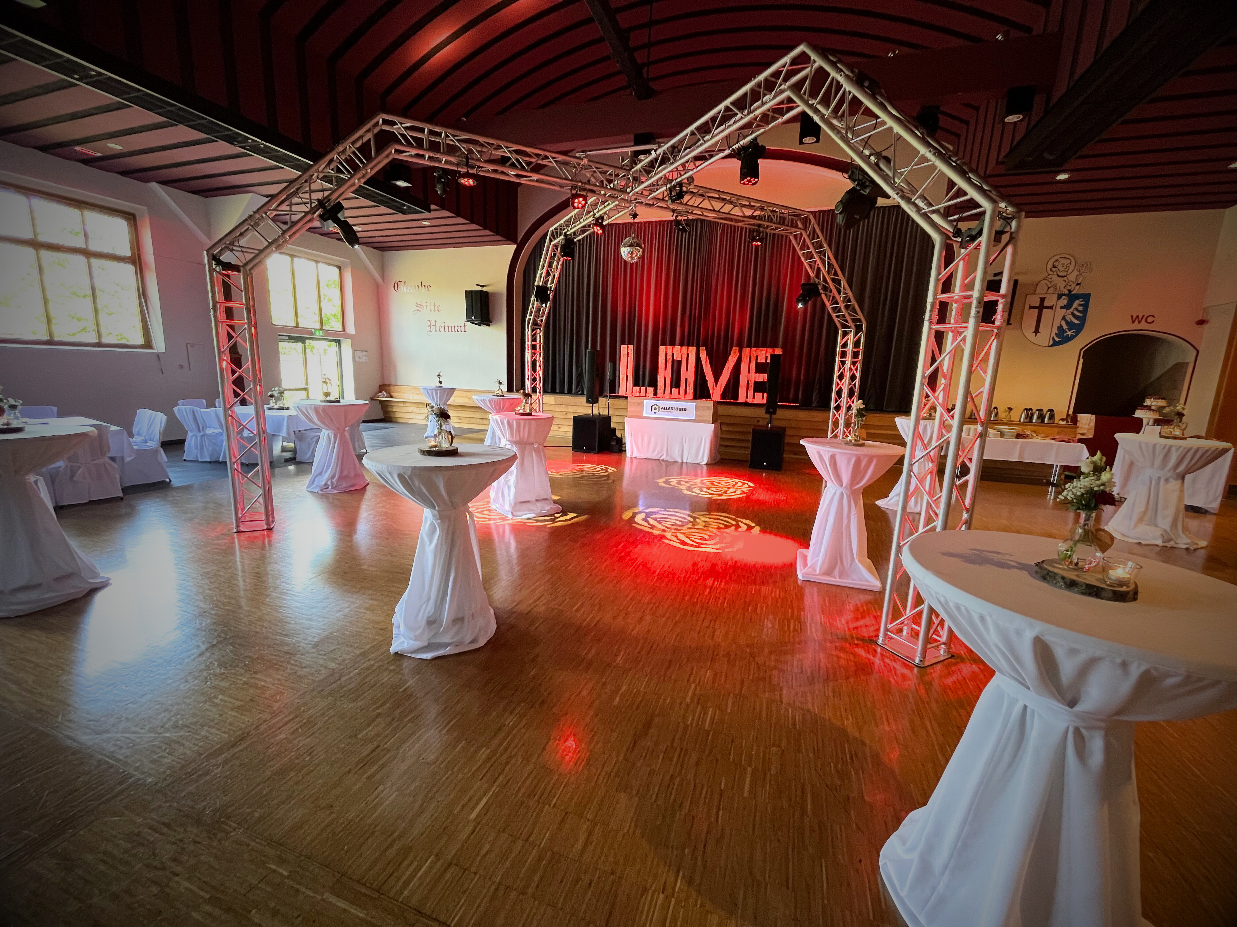 Wir bieten Euch für Eure Hochzeit eine umfangreiche Auswahl an professioneller Licht- und Tontechnik. Dazu gehören die optimale Ausleuchtung Eurer Wunschlocation, das richtige Licht für die Tanzfläche und das perfekte Soundsystem für Euren DJ oder Live-Act.